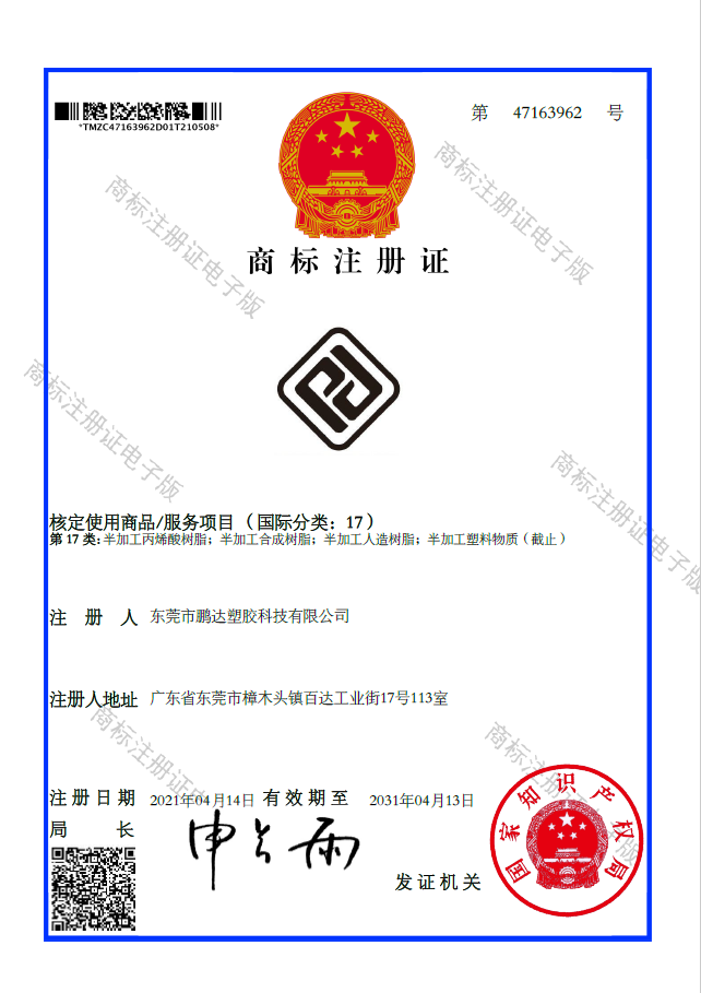 和鵬達塑膠科技有限公司合作幾年了,沒出現(xiàn)過任何問題,合作的很愉快;鵬達塑膠科技有限公司的產品質量好,把訂單交到他們手中,讓我們很放心;交期準時,服務也到位,很幸運能和這樣的公司合作。